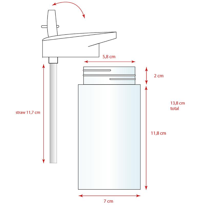 Plastová láhev s vysouvacím brčkem.