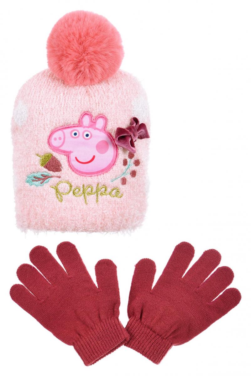 Souprava kulich a rukavice s motivem Peppa Pig.
