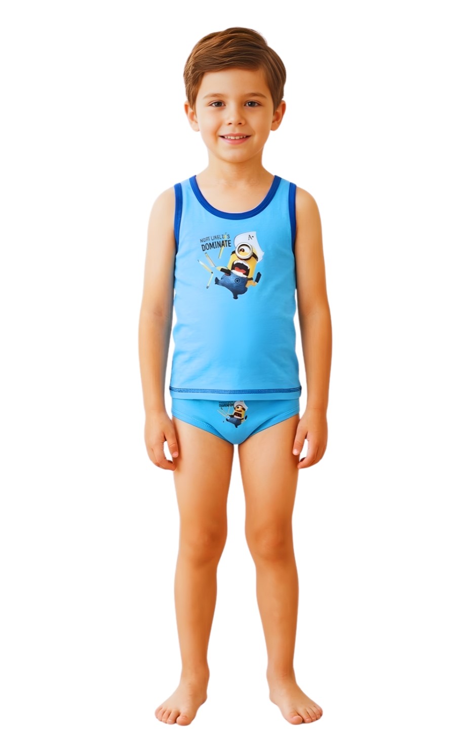 Souprava tílka a slipů Mimoni. V provedení modrá. 100 % bavlna. Oficiální licence, Sun City, Francie.