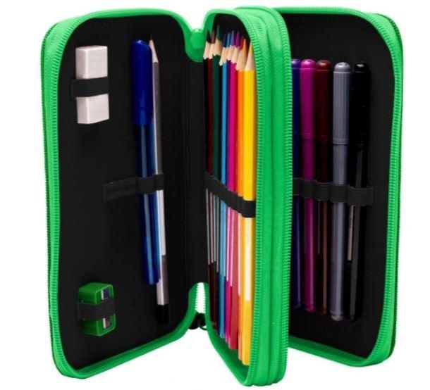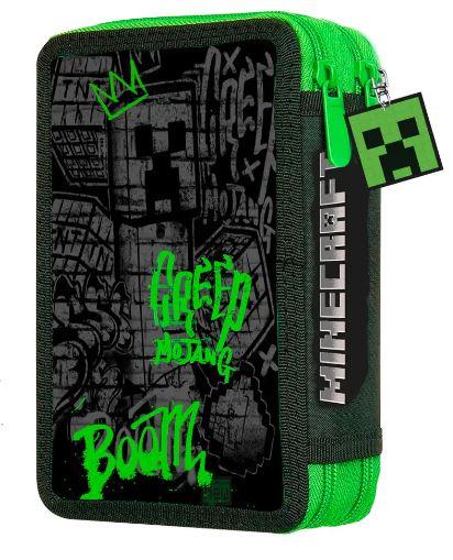Dvoupatrový penál s výbavou s motivem Minecraft.
